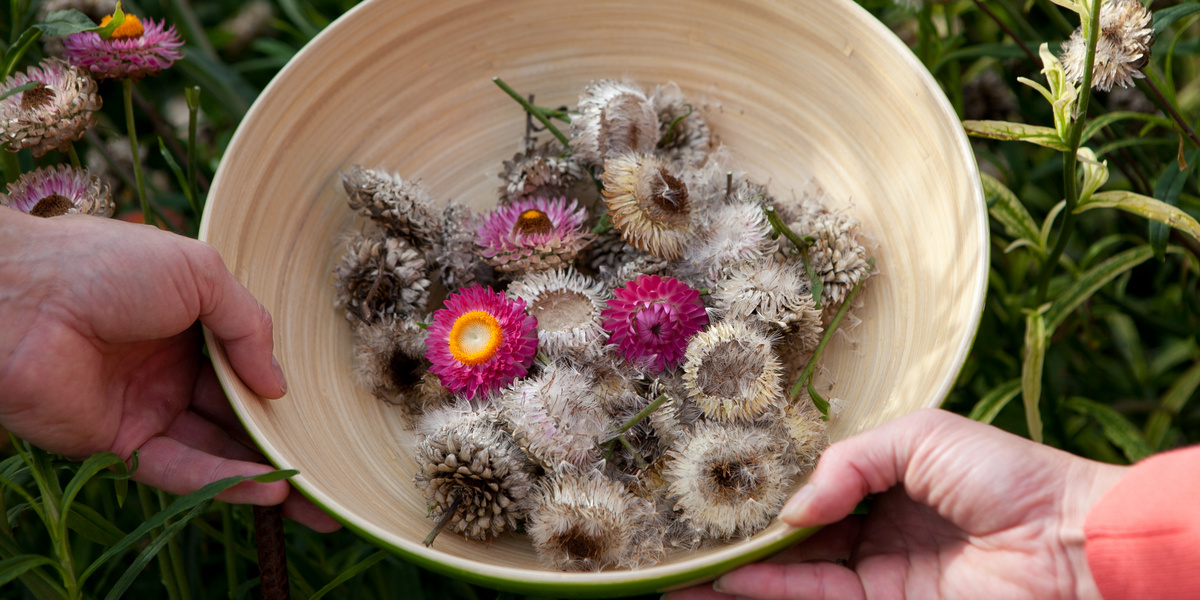 Von Strohblumen ziehst du sinnvollerweise Setzlinge, denn die zarten Jungpflanzen sind bei Schnecken ziemlich beliebt. Sie werden ab Mitte MĂ€rz im Haus ausgesĂ€t. Ins Freiland kannst du sie setzen, sobald der Flieder blĂŒht und Nachtfröste nicht mehr sehr wahrscheinlich sind. Der Boden sollte durchlĂ€ssig und nicht allzu nĂ€hrstoffreich sein. Von Juli bis zur grossen Herbstfeuchte geniesst du dann die zahlreichen BlĂŒten. Sofern du sie nicht pflĂŒckst, bilden sich im Innern ihres BlĂŒtenkörbchens nach der BlĂŒte zahlreiche Samen, die alle mit einem Fallschirmchen ausgestattet sind. Diese Samen lassen sich ziemlich einfach einsammeln. Gib sie in eine kleine SchĂŒssel, zerreibe sie krĂ€ftig und blase Fallschirmchen und ĂŒbrige Pflanzenpartikel vorsichtig weg. Die schweren, fruchtbaren Samen bleiben in der SchĂŒssel zurĂŒck. Achtung: Wenn du eine mehrfarbige Sorte vermehren möchtest, musst du unbedingt darauf achten, dass du von allen Farben Saatgut erntest, um nicht plötzlich eine Farbe zu verlieren.